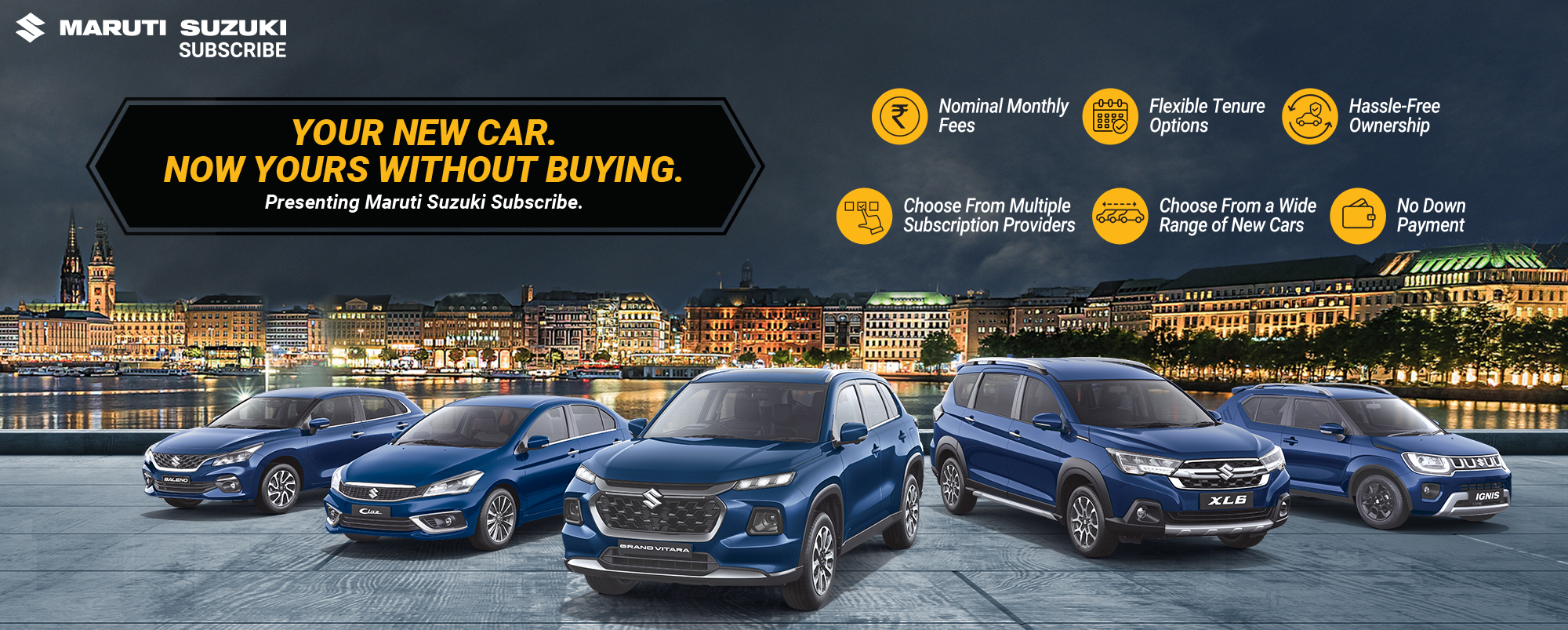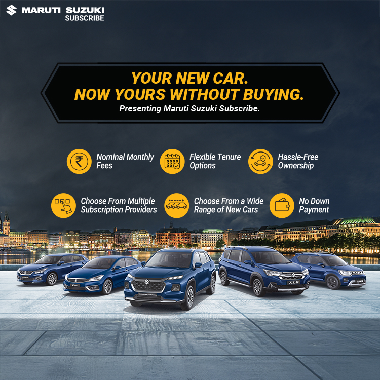 Maruti Suzuki Subscribe enables all customers to enjoy driving their preferred Maruti Suzuki cars without having to deal with all the financial responsibilities that come with owning a car.All you need to do is opt for a monthly subscription plan at a fixed monthly fee, which includes the routine maintenance and insurance costs, and choose a flexible tenure. At Tanya Automobiles in, Saharanpur - Delhi Road, Saharanpur, all Hatchback, Sedan, SUV, the MUV models line-up includes Baleno, Invicto, EVitara, Jimny, Ciaz, Ignis, Fronx, Grand Vitara, XL6. Here, you will enjoy Maruti Suzuki Subscribe benefits such as: